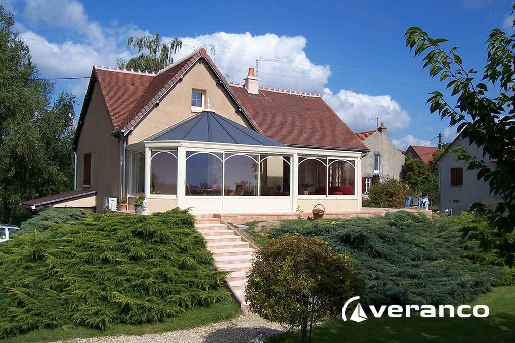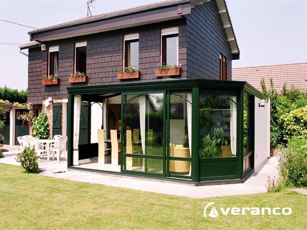 La Véranda Rubis est une véranda composée d'une toiture double pente et rayonnante. Les 2 angles coupés lui confèrent une esthétique harmonieuse. Le volume généreux de cette Véranda, la rend très agréable à vivre.